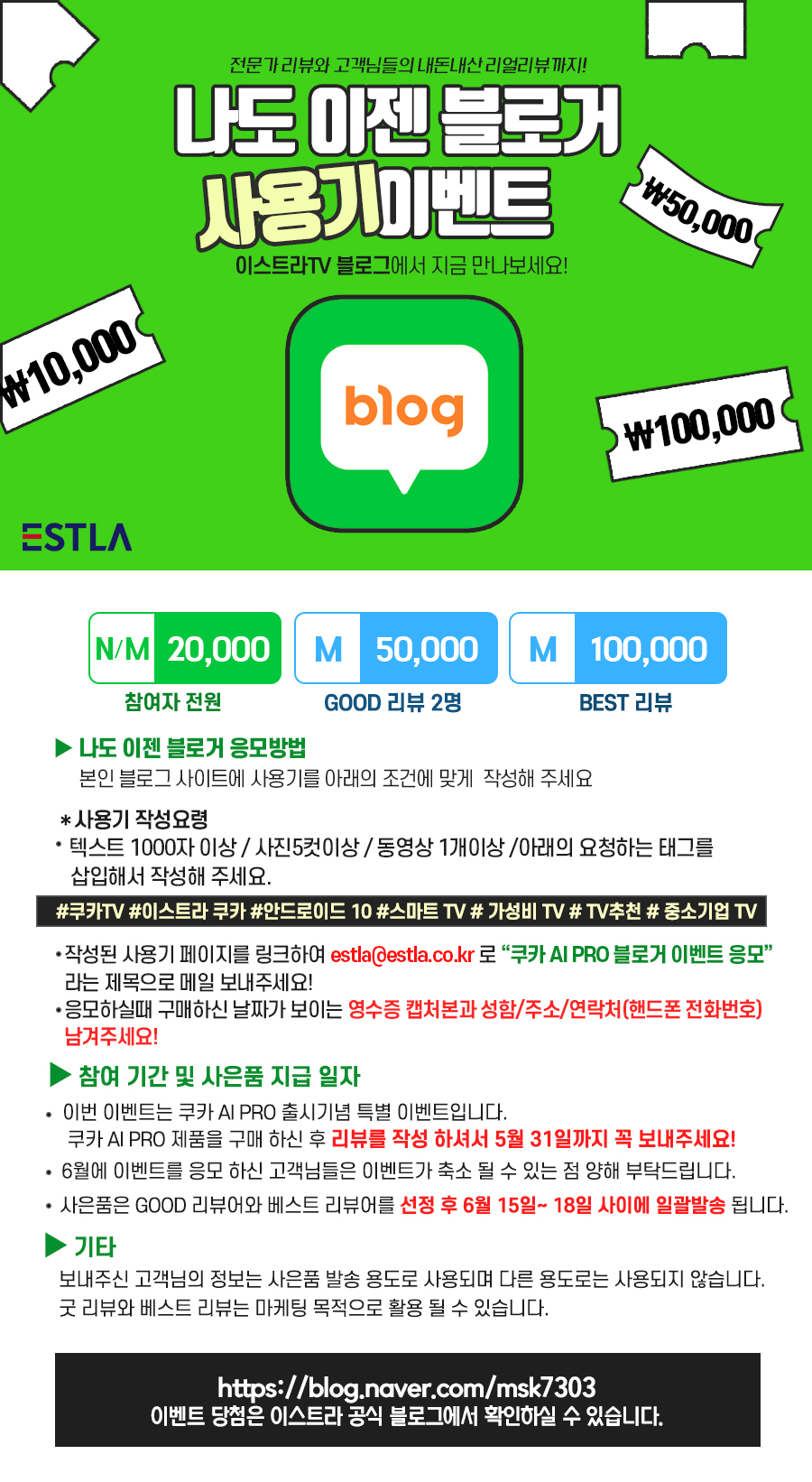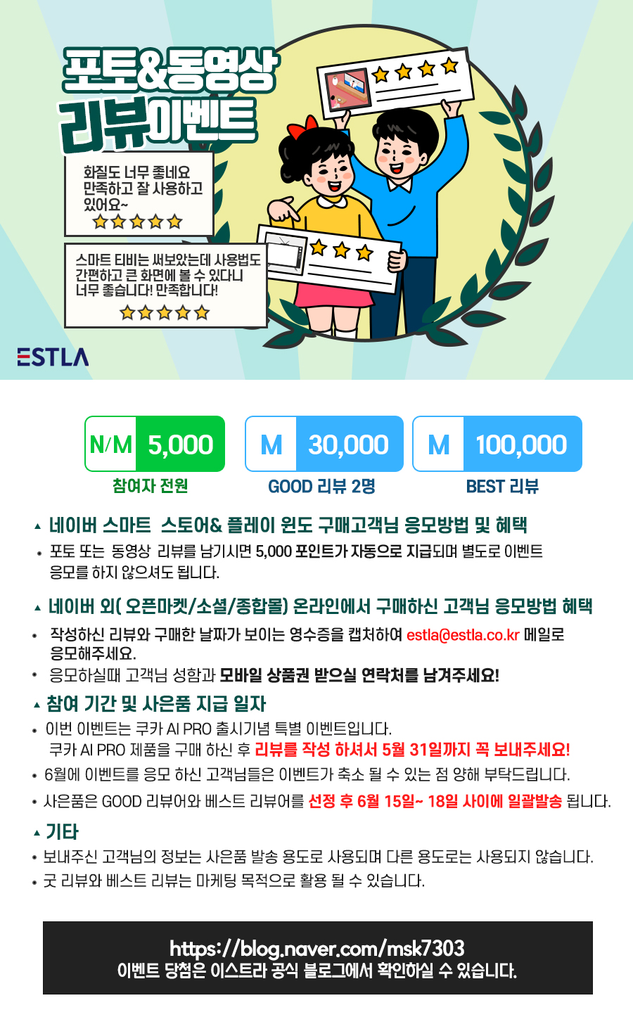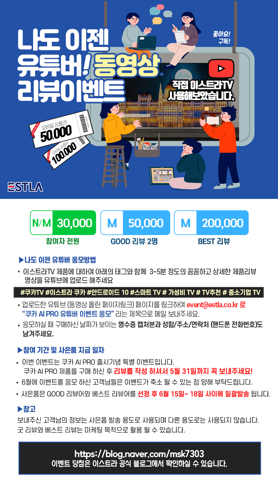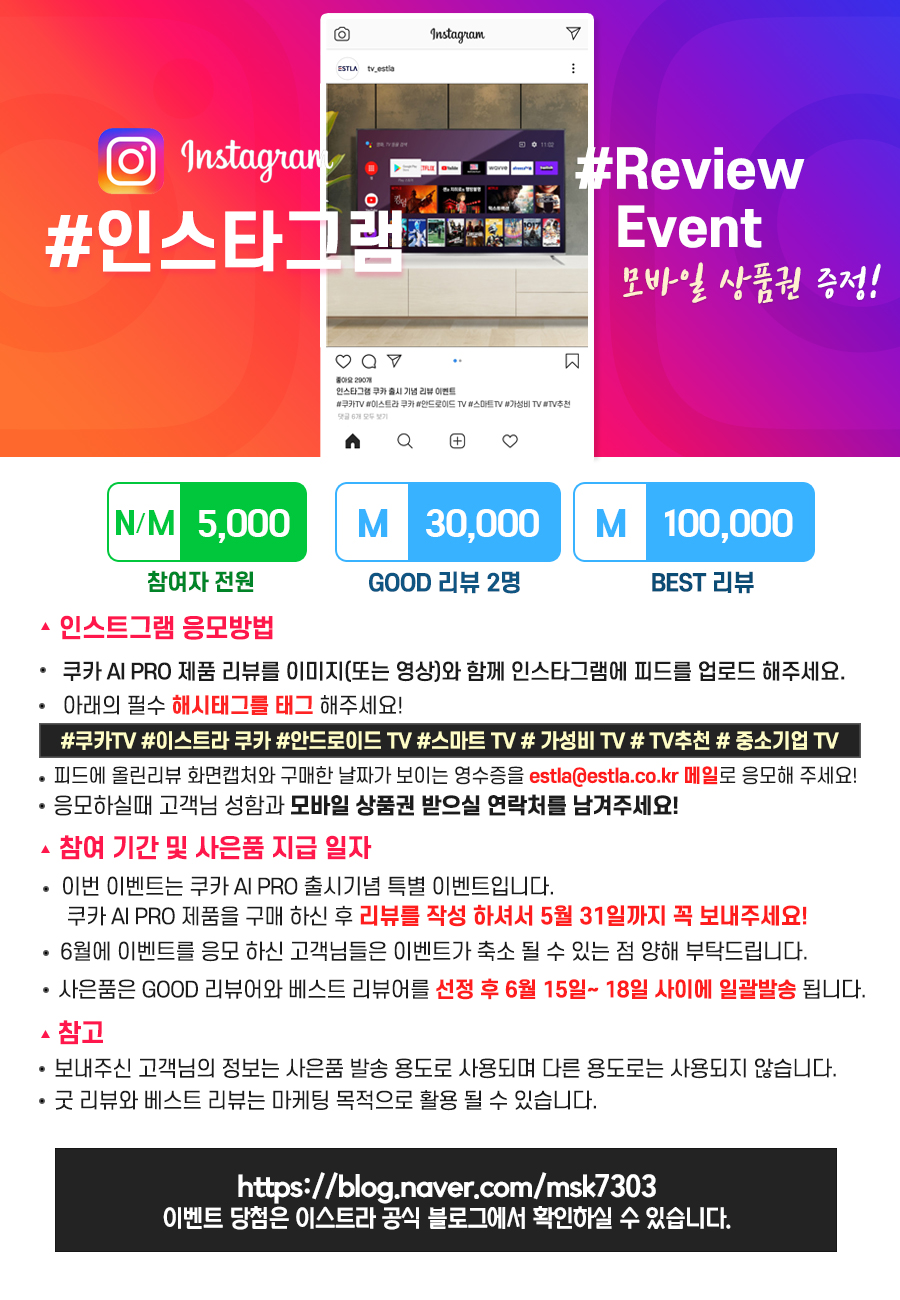 | 이스트라TV 매월 리뷰 이벤트 안내!!(ft.리뷰, 블로거, 유튜브) (0) | 2021.04.02 |