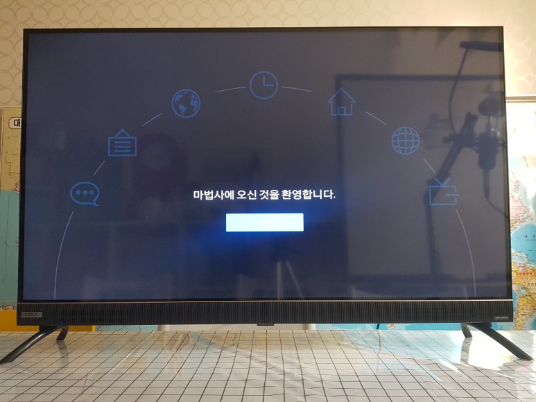 전원을 연결했습니다. 처음 세팅 화면 안내가 나오네요. 마법사가 안내해 준다고 합니다. 어렵지 않겠지유??