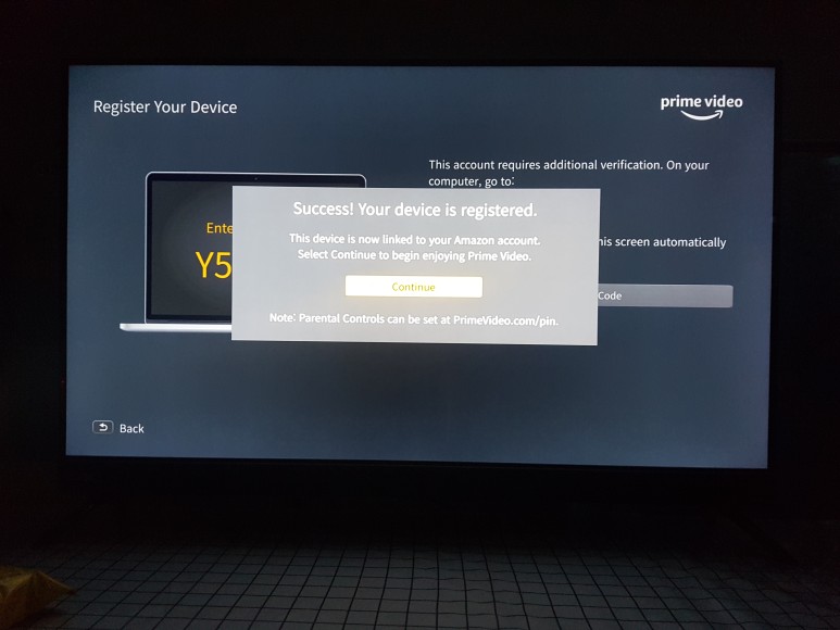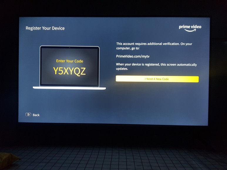 Sign in and start watching 버튼을 누릅니다. 그럼 이런 화면이 나와요. 이게 머지?? 옆에 설명을 읽어보니 컴터를 통해서 프라임 비디오 사이트에 가서 화면에 보이는 키워드를 치세요~라는 겁니다. 그대로 해줬습니다.