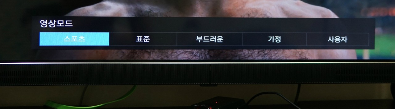 영상모드 버튼으로 설정하면, 좌측에 보이던 TV 모드와 다르게 선택 창이 하단에 출력됩니다.