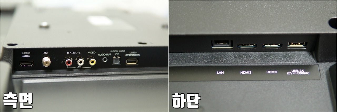 HDMI 3개, USB 포트2개, 옵티컬 단자, 오디오 아웃, 랜포트 등 지원