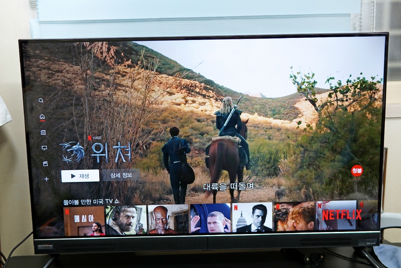 넷플릭스 버튼을 눌러서 바로 실행했습니다. 기존에 쓰던 일반 이용권에서 4K UHD 이용권으로 업그레이드를 진행했으며, 와이파이 연결보다 유선 랜 연결을 권장합니다. 최근 넷플릭스에서 가장 핫한 컨텐츠로 이미 정주행을 마친 위쳐도 4K 해상도를 지원합니다.