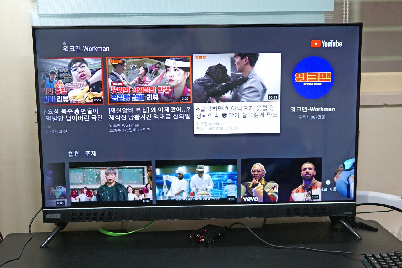 FHD 해상도 영상도 많습니다. 우리가 즐겨 시청하는 워크맨도 4K UHD 해상도를 지원하지 않으나, 43인치 대화면으로 TV 시청 거리가 2~3M 정도이고, 따라서 보통 사이즈의 모니터보다 더 멀리에서 시청하기 때문에 FHD 원본도 화질이 괜찮아보입니다.