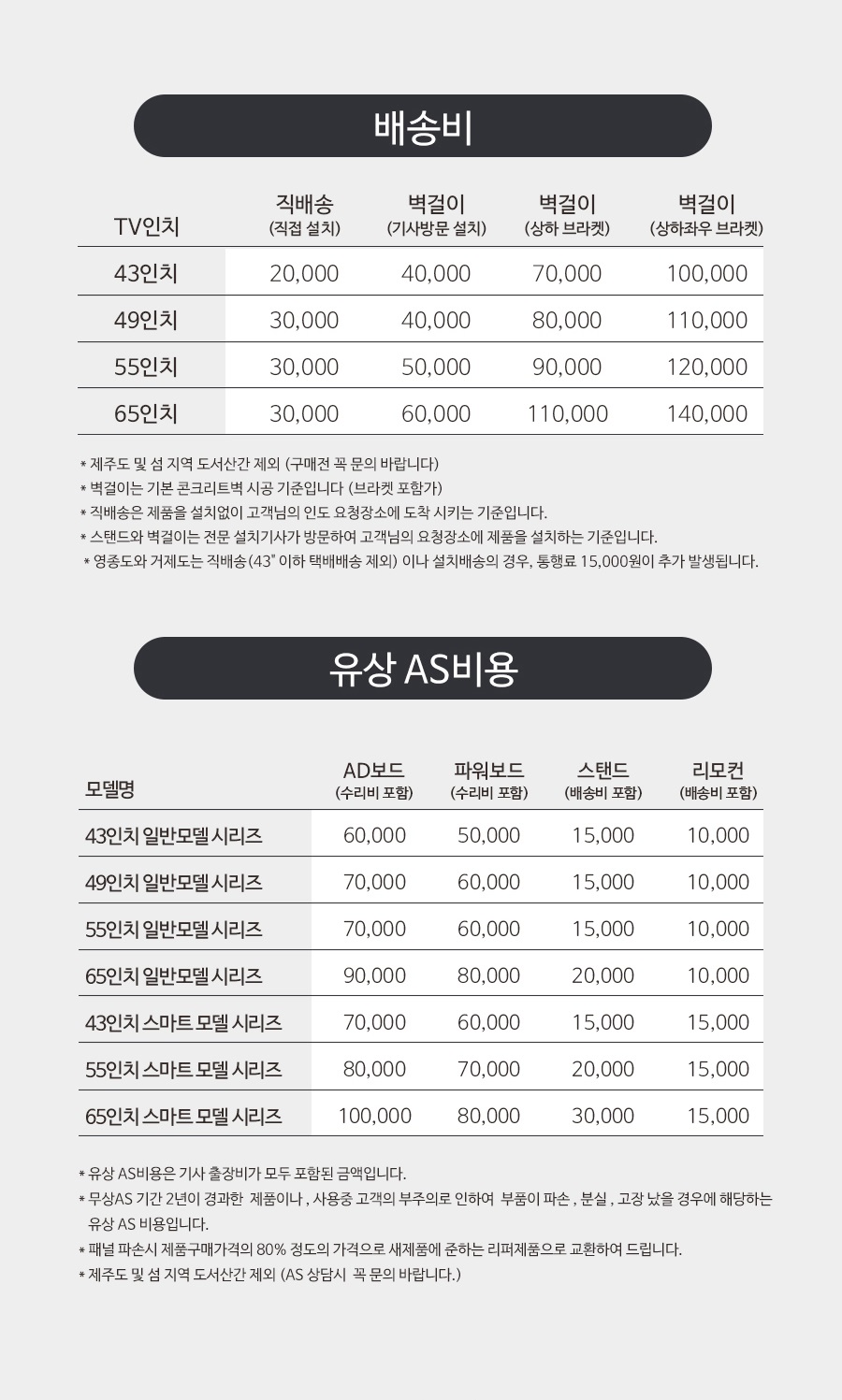 정말 내 실수로 티비에 물이 들어가거나 충격을 주는게 아니면 왠만하면 무상 A/S가 된다는 거죠