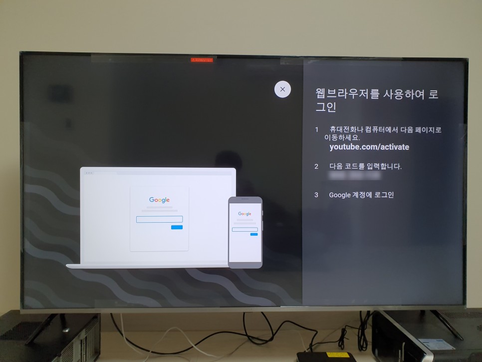 유튜브는 실행하니 티비에서 바로 로그인 하는게 아니라