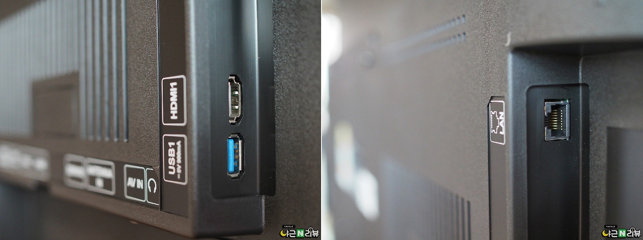 측면은 실사용 시 접근성이 가장 좋은 곳으로 USB와 HDMI 1개 인터넷 사용을 위한 LAN 포트가 있습니다. 개인적으로는 셋탑박스와 PC 연결을 함께 두고 사용하고 있어서 측면에 HDMI를 하나 더 배치해 주기를 바랬으나 아쉽게도 측면은 메인 포트 1개로 구성되어 있습니다. USB 포트도 은근 자주 사용하는 편이라 측면 배치는 좋았습니다.