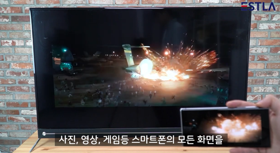WIFI신호를 통해 가능하며 스마트폰의 홈 화면부터 그대로 거울처럼 그대로TV로 나타나요