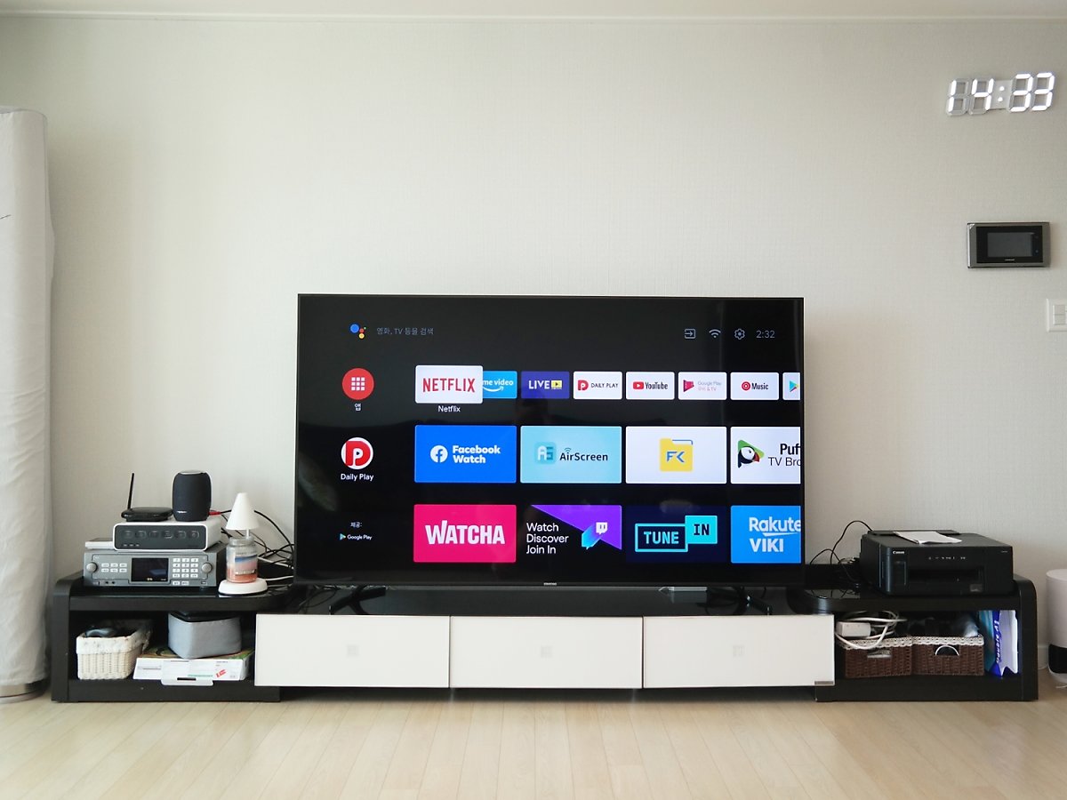 크롬캐스트를 내장하고 있어서 안드로이드폰/아이폰의 사진이나 동영상, 음악 등 좋아하는 콘텐츠를 티비의 미러링 기능으로 바로 실행할 수 있습니다.