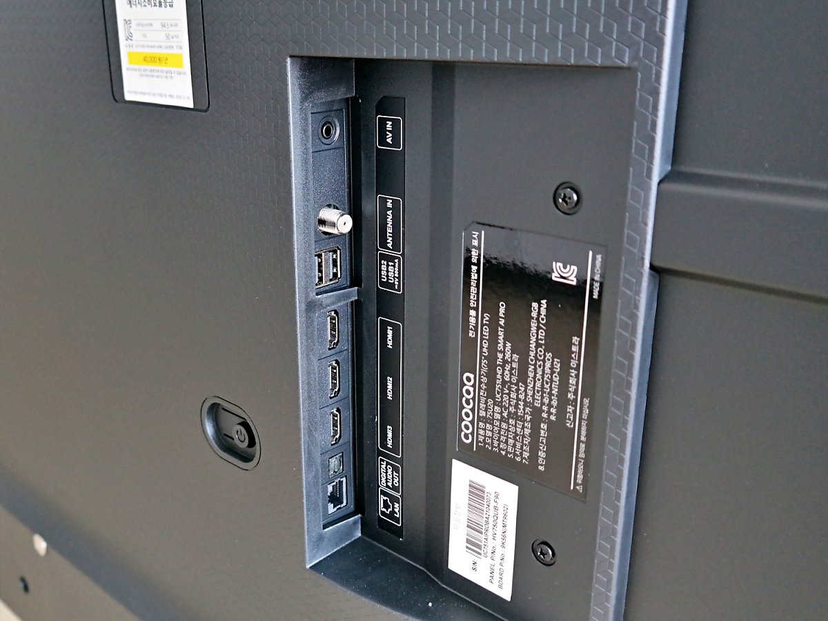 후면을 보면 RF 동축, HDMI 단자 3개, USB 단자 2개, LAN, Wi-Fi, OPTICAL 등의 여러 단자를 제공하고 있어서 다양한 외부 기기 연결 및 컨트롤을 손쉽게 할 수 있습니다. 메이저 브랜드 못지않은 사용 편의성과 퍼포먼스를 제공하고 있는 것을 확인할 수 있네요.