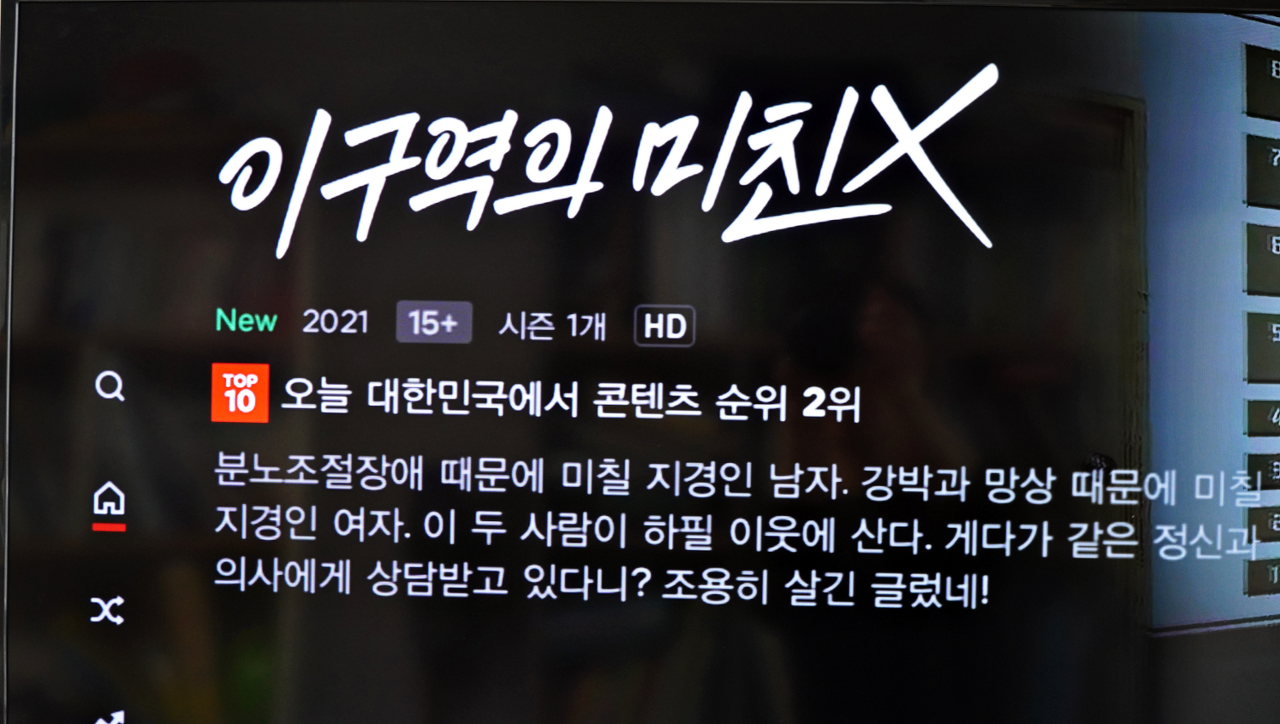 지금 제가 보고있는 컨텐츠 2개입니다. 아시다시피 넷플릭스는 저작권이 심해 화면을 보여드리는건 패스 할께요. 먼저 위의 두 드라마의 화질 차이가 납니다. 하나는 4K HDR이고 또하나는 HD인데요 이전 40인치 대의 TV에서는 사실 큰 차이를 못느꼈는데요 70인치의 크기로 보니 확실히 4K의 화질을 제대로 느낄 수 있었습니다.