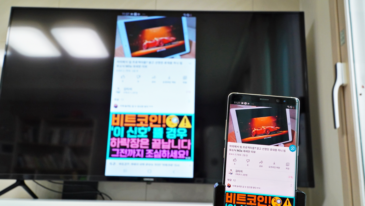 이렇게 세로 미러링도 바로 되기에 세로 컨텐츠를 즐길 수도 있으며