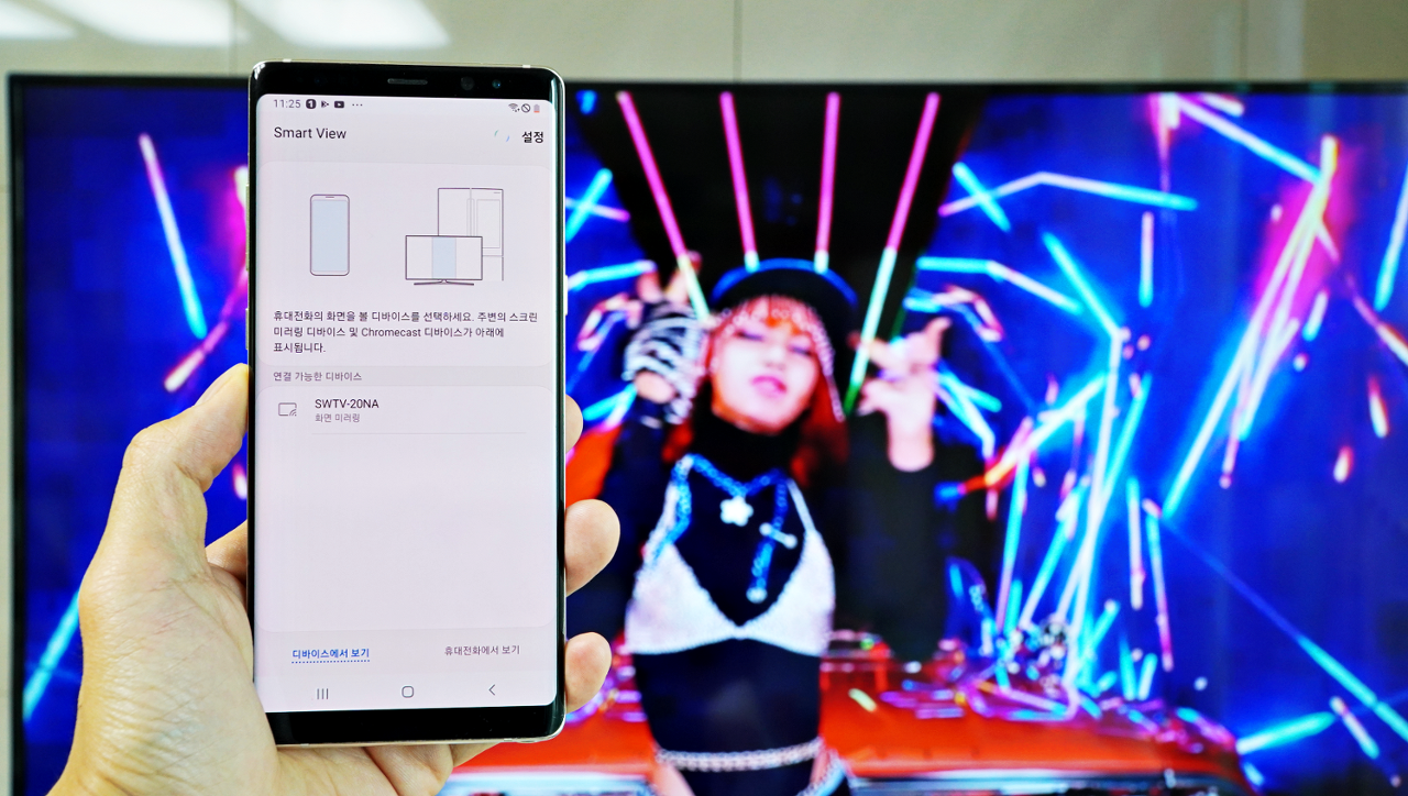 이번에는 스마트폰 미러링 부분을 한번 보도록 할께요. 우선 안드로이드는 따로 설정할 필요없이 굉장히 됩니다. 기본적인 스마트 뷰 기능을 사용하면되는데요,