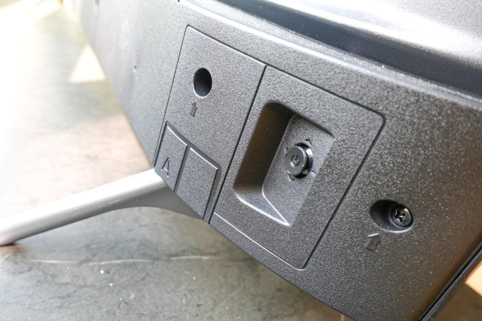 뒤쪽 하단에는 전원 버튼이 있고 전원 버튼은 내비게이션 조작이 가능해 리모컨 없이 후면에서도 조작이 가능합니다.