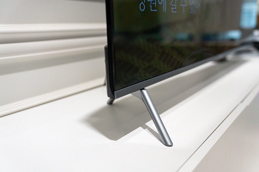 설치되어 있는 모습인데요 스탠다드 하면서도 심플한 느낌으로 군더더기가 전혀 없습니다. 양쪽으로 스탠드가 있어 몰입도 좋게 감상할 수 있는데 디자인만 보면 중소기업 제품이라는 생각을 전혀 하기 힘들것 같아요.