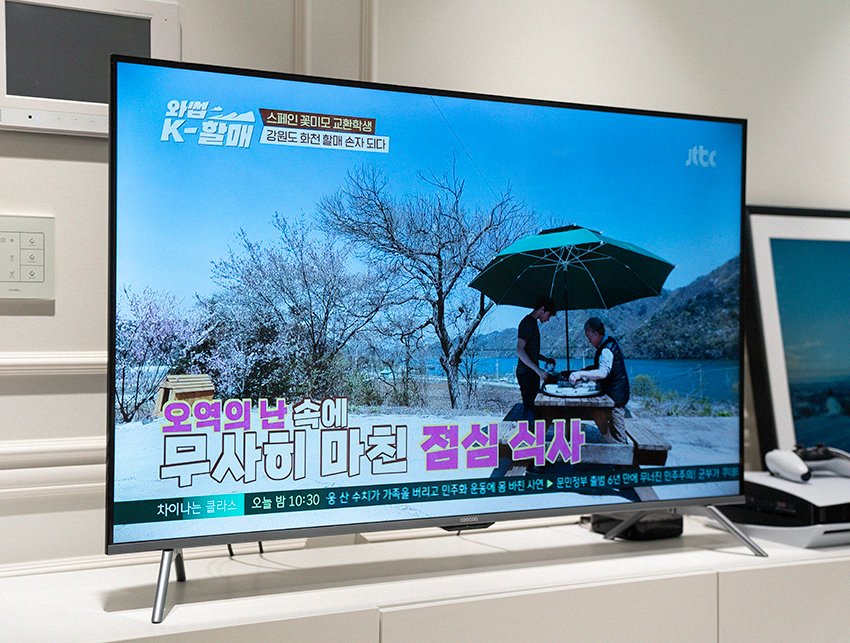 화질도 생각보다 좋더라구요. 안드로이드 기반의 스마트TV라서 그만큼 다양한 4K 콘텐츠를 접할 수 있는 방법이 많은데요 확실히 고해상도로 보는 콘텐츠의 매력은 정말 좋습니다. HDR 10을 지원하고 VA RGB 패널이 탑재 되었는데 직접 보면 화질이 생각했던것 이상입니다. 쨍한 느낌에 색표현도 좋은 CHAMELLON EXTREME 2.0 엔진이 사실적인 느낌으로 이미지 업스케일링을 해주고 세부 영역을 조정해서 자연스럽게 표현하기 때문이라고 해요. 특히 AI 알고리즘이 있어서 노이즈를 제거해주기 때문에 선명한 화면을 볼 수 있다는 점도 장점이죠.