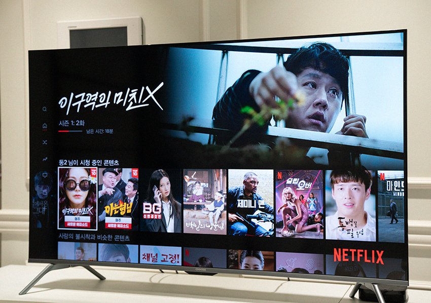 칩셋도 업그레이드 되었는데 MT9602과 차세대 코덱AV1이 탑재 되었죠. 점점 TV도 스마트폰화 되어간다랄까... 덕분에 그래픽 성능 및 처리속도가 빨라졌습니다. 이게 뭐냐면 직접 실행해보면서 완전 체감했던 점인데 TV가 종료된 상태에서 전원이 켜지는 부팅속도라든지 넷플릭스와 같은 앱 실행 속도, 리모컨 반응 속도가 정말 빠르더라구요.