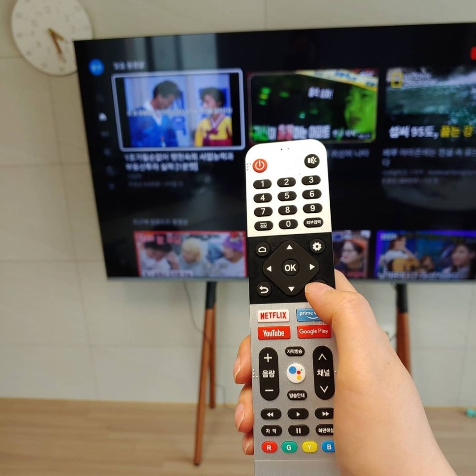 예쁜 실버 리모컨을 통해 기본 UI 조작은 물론