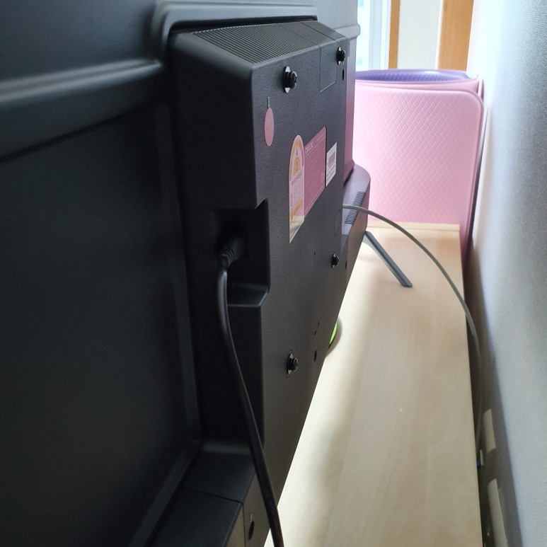 뒷면에 전원연결선이랑 인터넷 연결 랜선맞 꽂아도되서 선이 지저분하게 나와있지 않아 벽걸이로 걸지 않더라도 깔끔하게 유지할수 있어요!