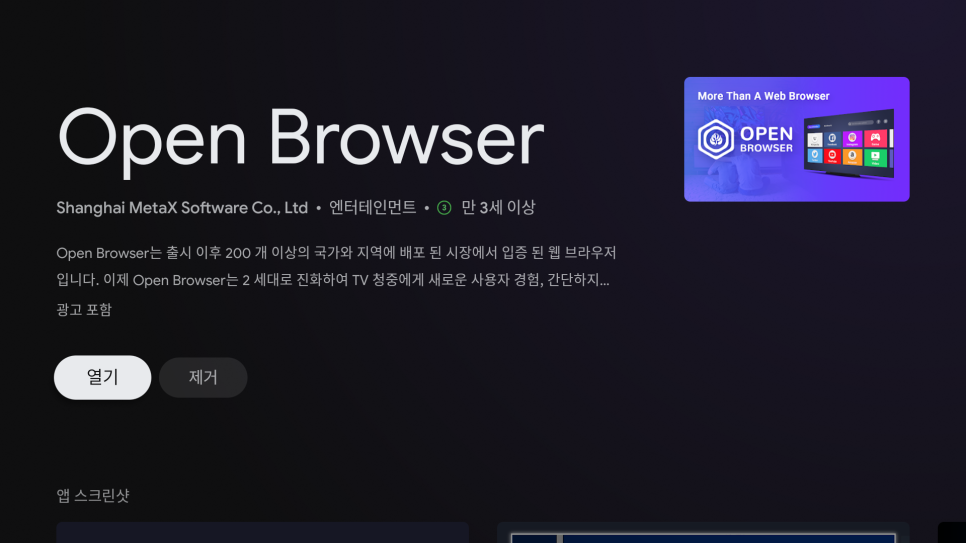 위 이미지는, 안드로이드TV OS에서는 검색은 가능하지만, 일부 다운로드가 되지 않는 어플이 있어 넣었습니다