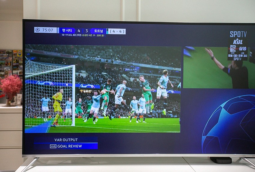 당연 광시야각을 지원해서 측면에서도 색 뭉게짐 없이 꽤 괜찮은 영상을 볼 수 있는데 확실히 패널도 좋고 75인치의 큰 화면에서 오는 압도적인 스케일을 제대로 느낄 수 있습니다. HDR10을 지원하는 컨텐츠는 훨씬 더 생생하게 볼 수 있습니다.