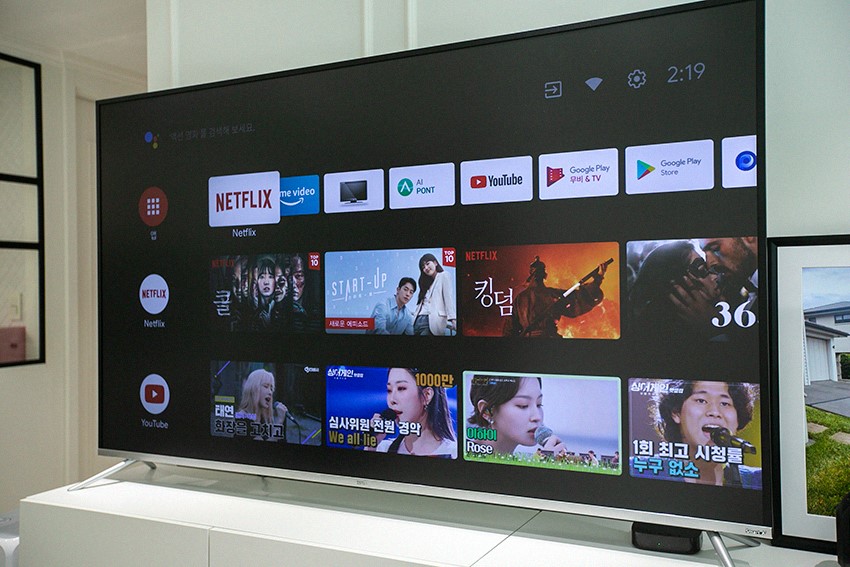 블루투스 5.0을 지원해서 다양한 무선 이어폰이나 스피커 등과도 쉽게 연결해서 사용할 수 있죠. 여기에 음성 인식은 물론 구글 어시스턴트 지원까지 확실히 스마트TV 다운 모습을 다 갖췄습니다.