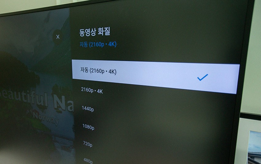 TV는 4K UHD 해상도를 지원하고 있기 때문에 유튜브 등에서 4K 해상도를 선택할 수 있고