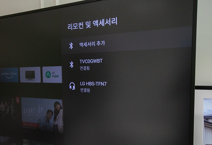 아무래도 소리가 커야 몰입도가 더 좋은데 무선 이어폰을 블루투스로 연결해두면 가족들을 방해하지 않고 TV 시청에 몰입할 수 있어서 헤드폰이나 이어폰 등을 사용하신다면 꼭 연결해서 사용하시길 추천 드립니다.
