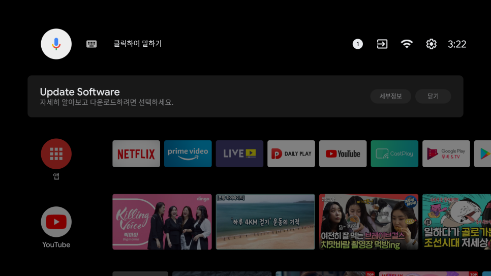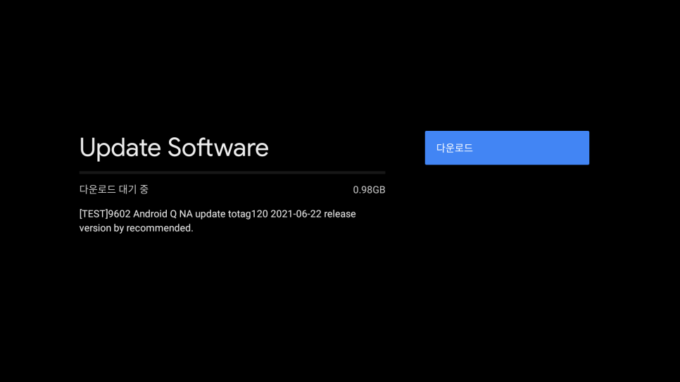 사용중이신 TV가 안드로이드os이다보니 필요한 경우엔 드물긴 하지만 업데이트를 진행합니다.
