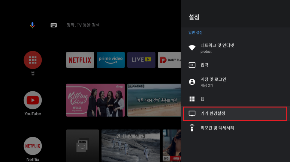 이후 설정창 아래의 기기환경설정을 들어가주시면