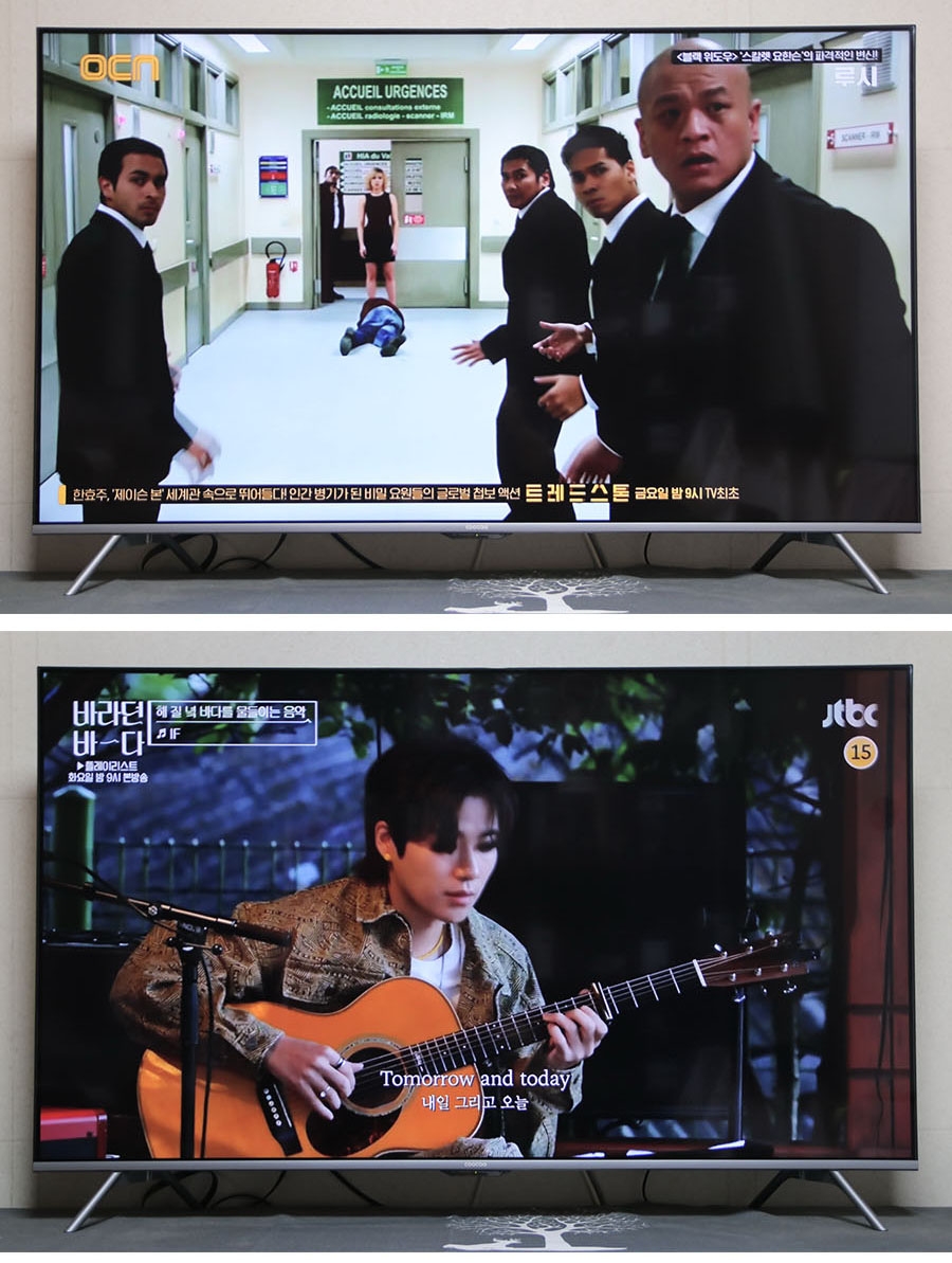 지상파 방송 외에도 케이블 방송의 화질과 색감도 4K 해상도 기반으로 전체적으로 선명하고 깨끗한 방송을 즐길 수 있습니다.