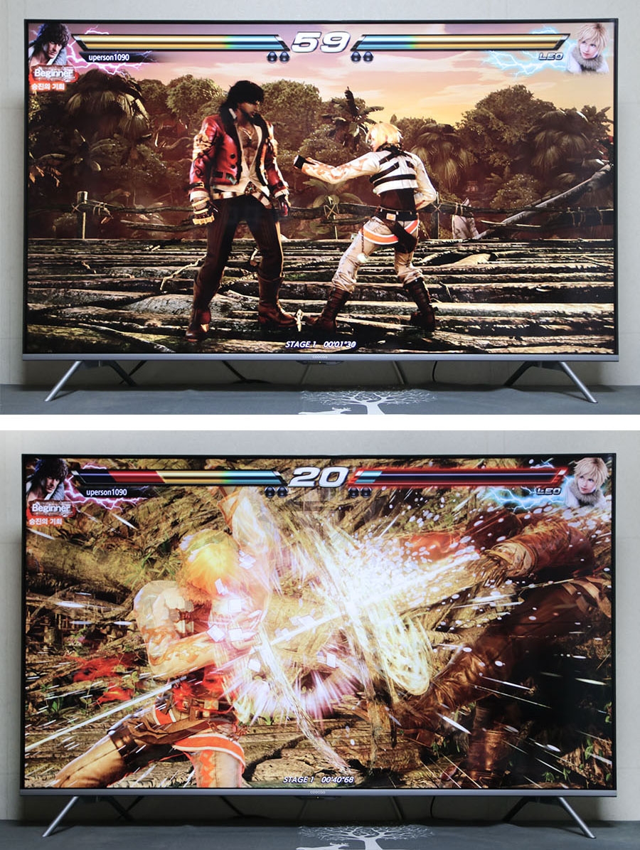 가장 강력한 하드웨어 MT9602 칩셋을 통한 화질은 콘솔 게임에서도 체감될 정도로 우수하며 광시야각 IPS RGB 패널의 단점이라고 할 수 있는 6~8ms의 느린 응답속도는 빠른 움직임이나 격투 장면에서 잔상이 느껴지기는 하지만 화질, 색감 자체는 영상에 최적화된 화면으로 PS4/PS5 콘솔 게임을 즐기는데도 크게 부족함이 없습니다.