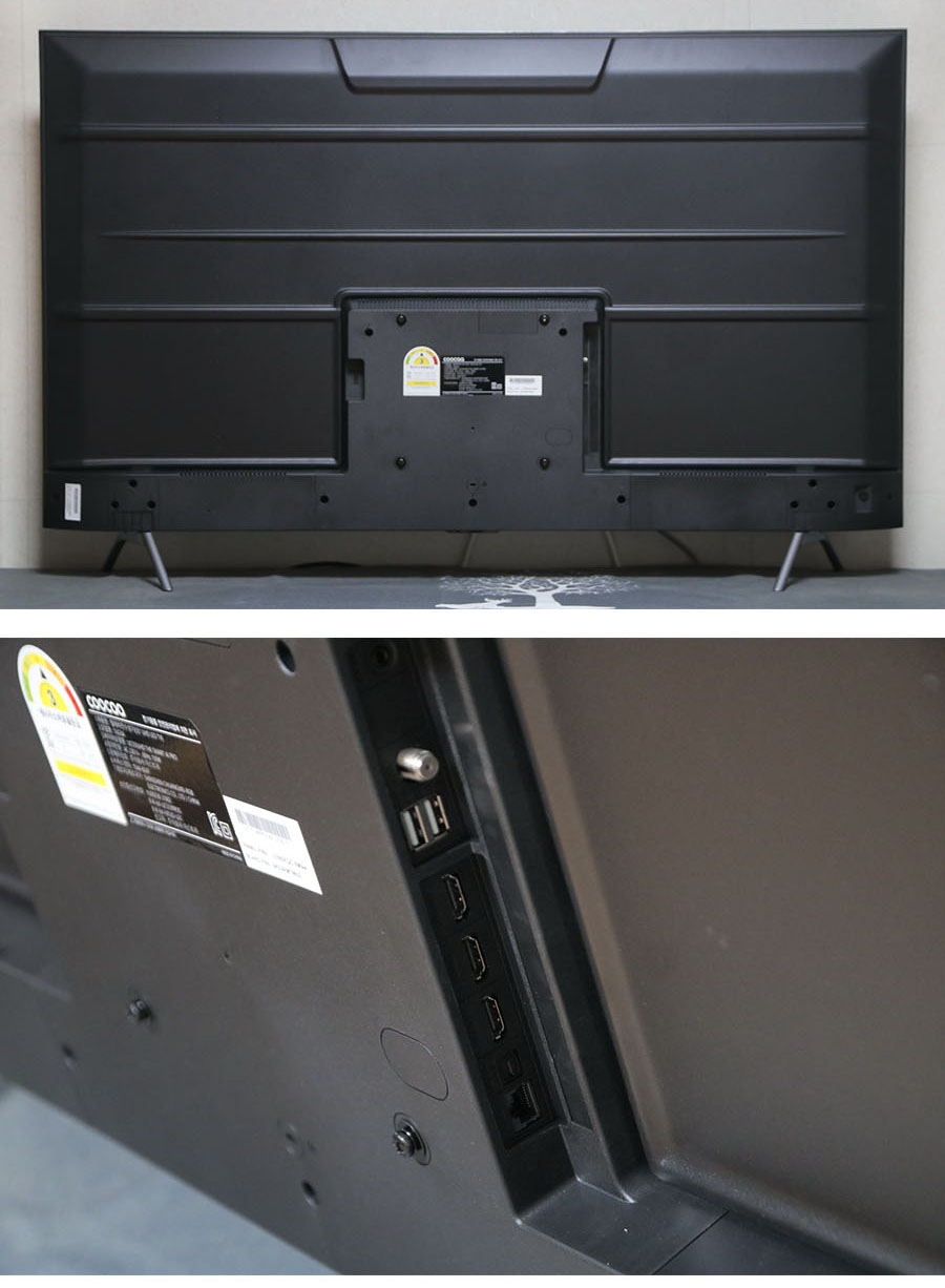 후면에는 다양한 멀티미디어 입출력 포트가 자리하고 있는데 측면에서 장착하는 수평 방식으로 구성되어 있습니다. HDMI 2.0 포트 3개, USB 2.0 단자 2개, 유선 랜포트 1개, RF 동축, Mini AV IN, 옵티컬 단자 1개 등 부족함 없이 제공하고 있습니다.