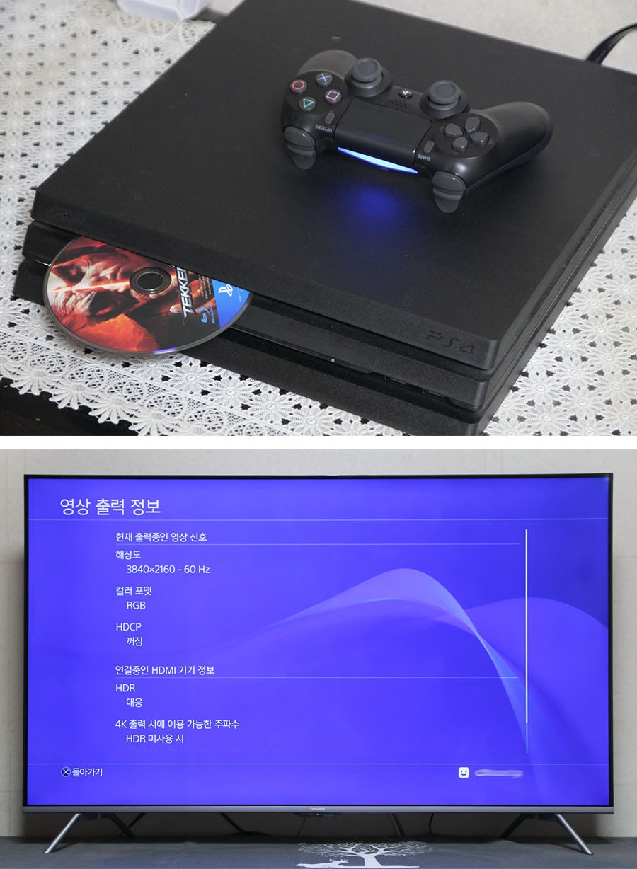 4K TV를 구입하는 이유는 콘솔 게임도 큰 이유 중 하나로 PS4 PRO와 연결하였습니다.