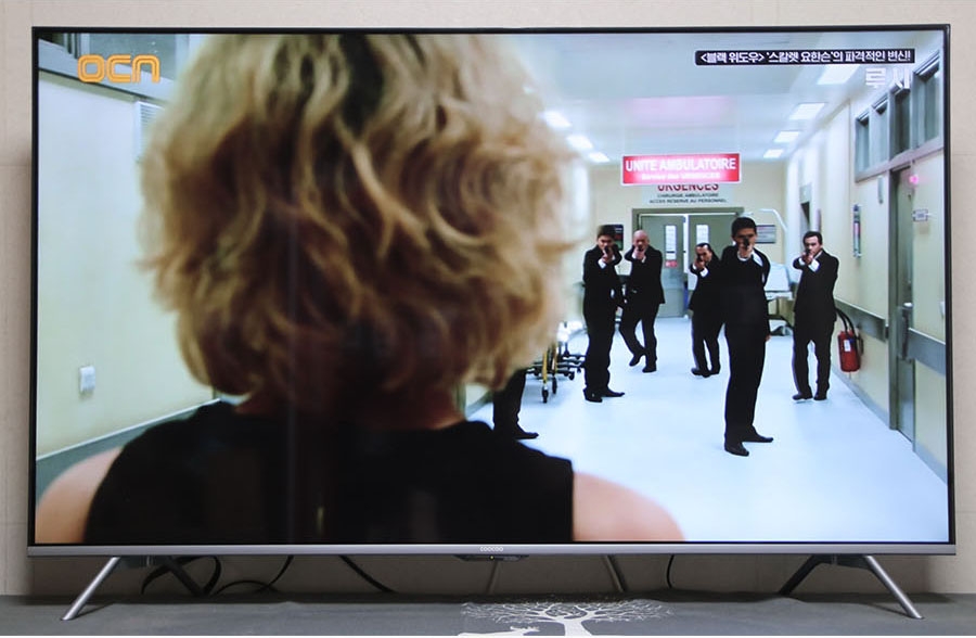 UHD 해상도는 FHD 해상도보다 4배나 선명하여 특정 부분을 확대해도 깨짐없이 선명하게 보이며, 배우들의 피부톤이나 피부상태 등을 깨끗하게 볼 수 있었습니다.
