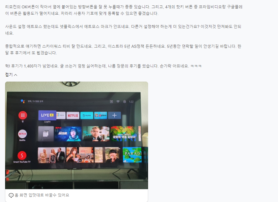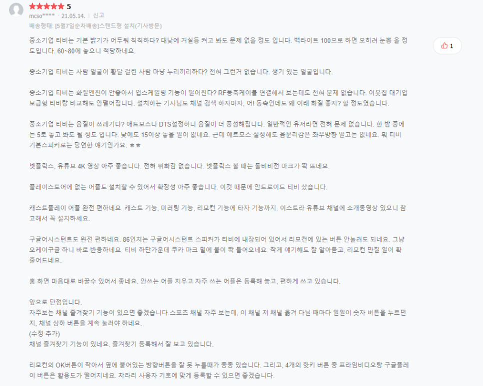 지난달 43~65인치에 이어 70인치~86인치분들의 리뷰를 만나봤는데요.