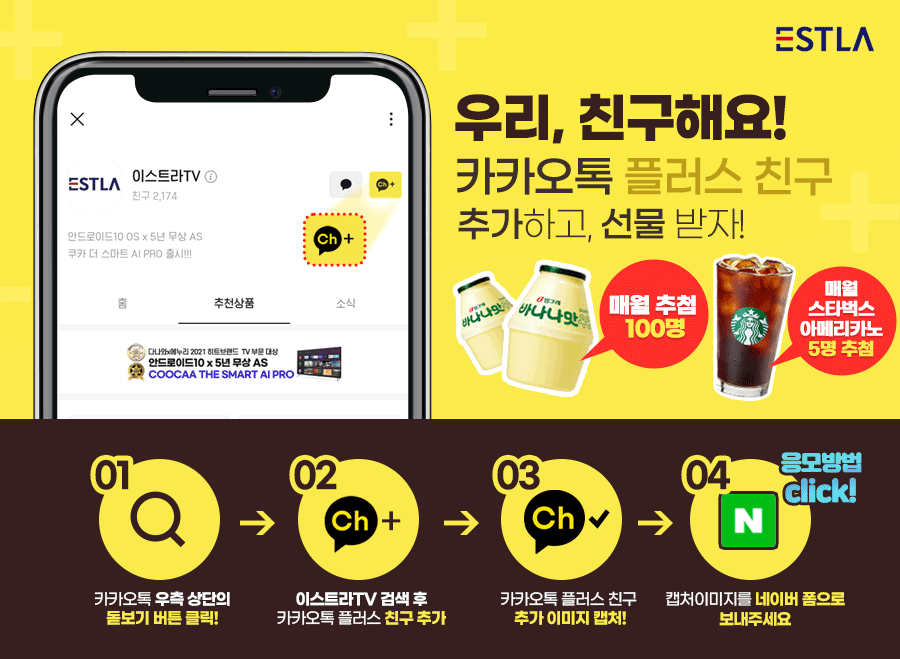 이스트라TV 카카오톡 채널 친구추가를 하고 상품받아가세요~