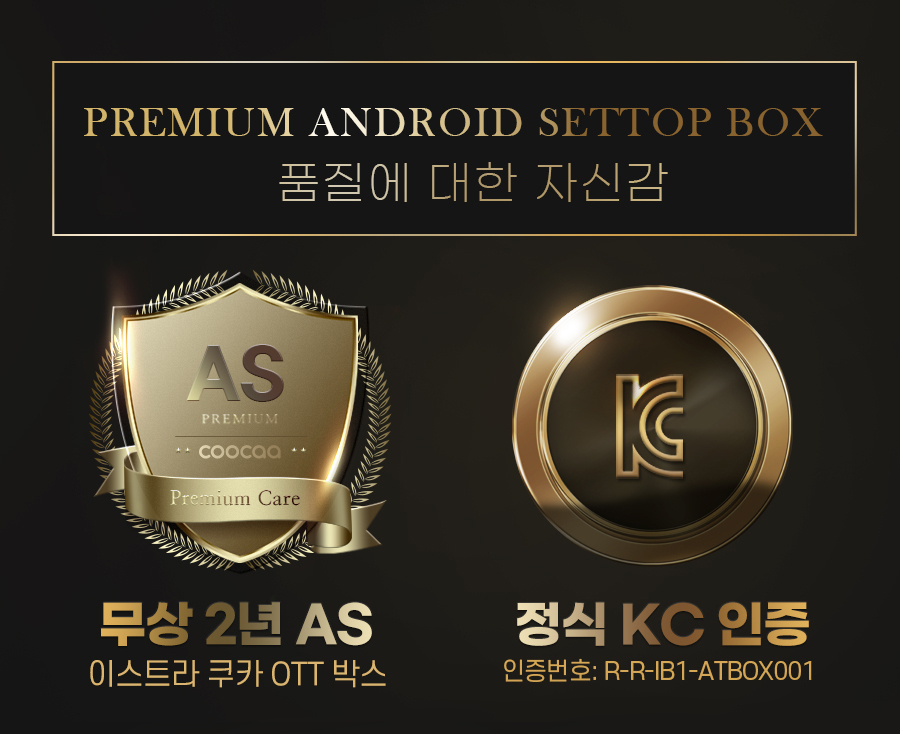 무엇보다도 대부분의 안드로이드 셋탑박스들이 해외 직구 상품인데 비해 쿠카 AI PRO 안드로이드 셋탑 박스는 이스트라TV에서 정식 KC 인증을 받아 국내에 판매하는 제품으로, 안드로이드 셋탑 중에는 유일하게 무상 2년 A/S를 보증하며 이스트라TV의 프리미엄 A/S 서비스를 받을 수 있다.
