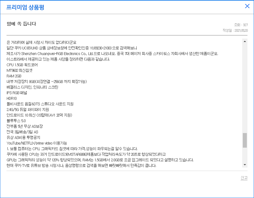 | 75인치 쿠카 UC651UHD사용기 (인스타그램 베스트 리뷰어) (0) | 2021.10.11 |