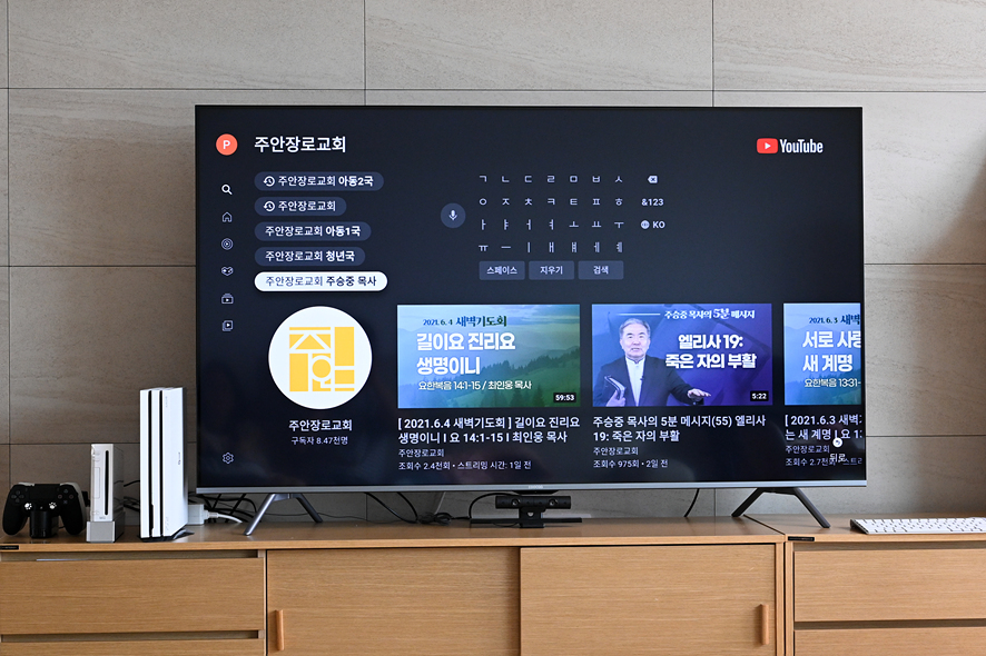 무엇보다 키보드를 버리고 전용 리모컨을 선택한 이유는 다름 아닌 음성 인식률입니다. 유튜브, 넷플릭스 등 검색할 일이 많은데요. 생각보다 음성인식이 아주 잘됩니다. 아쉽게 아이들 목소리는 인식률이 떨어지지만 성인은 거의 95% 이상의 정확도 굿!