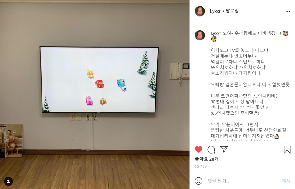 젊은부부의 가정집에 배치하려는 경우인데, TV를 장만하면서 생겼던 소소한 일들을 함께 적어주셨어요
