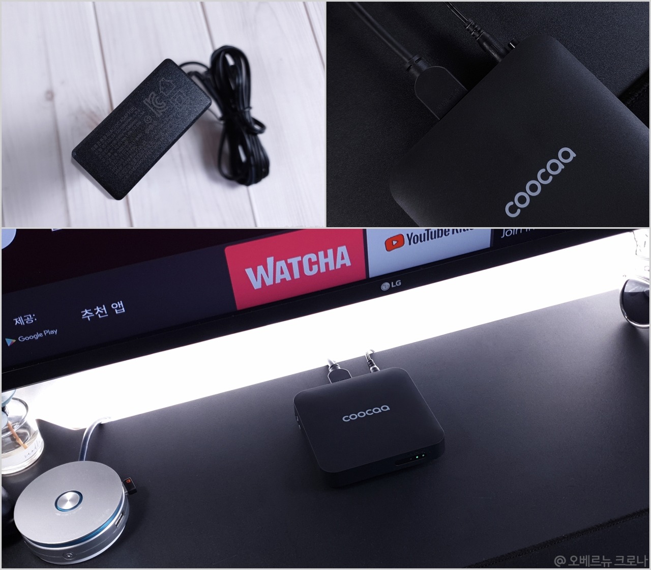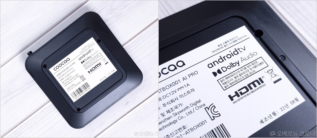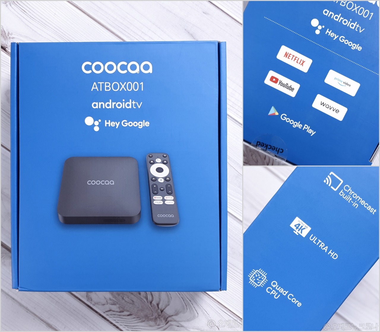 구성품으로는 셋탑박스 본체와 리모컨, 전원 어댑터, HDMI 케이블, 그리고 사용 설명서로 구성되었습니다. 한글로 기재된 사용 설명서는 그림이 함께 인쇄되어 있어, 이해를 돕는데요. 해당 모델은, 구글의 크롬 캐스트가 내장되어, 무선 연결로 간편하게 모바일 기기의 화면을 공유해, 커다란 거실 TV로 즐길 수 있으며, 어시스턴트로 편하게 음성으로 명령도 가능한, 활용도 높은 제품입니다.
