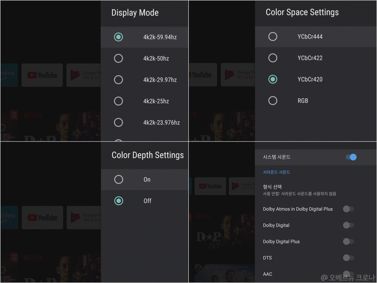 쿠카 스마트 셋톱박스를 사용해, 넷플릭스와 유튜브 등을 시연해 봤는데요. 이동과 동작 기능 모두 인식 속도가 빨라, 상당히 쾌적한 환경에서 구동이 이루어지는 것을 확인할 수 있었습니다. 저는 HDR 10을 지원하는 모니터를 사용하고 있어, Color Depth Settings를 켜고 테스트를 진행했는데요. 디스플레이에서 HDR을 인식해, 자동으로 HDR 프로필로 변경되었으며, 장치 하나로 일반 모니터를 간단하게 스마트TV로 변경할 수 있었네요.