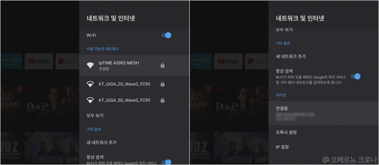 제품을 처음 연결하면, 사용을 위해 기본적인 설정을 진행하는데요. 해당 제품은 무선과 유선 연결을 모두 지원하지만, 무선 환경에 조금 더 최적화되어 있습니다. 2.4G와 5G망을 지원하며, 구글의 안드로이드 OS를 기반으로 하고 있기 때문에, 스마트폰과 같은 네트워크 환경이라면, 계정 복사를 통해 간단하게 설정을 마칠 수 있습니다.
