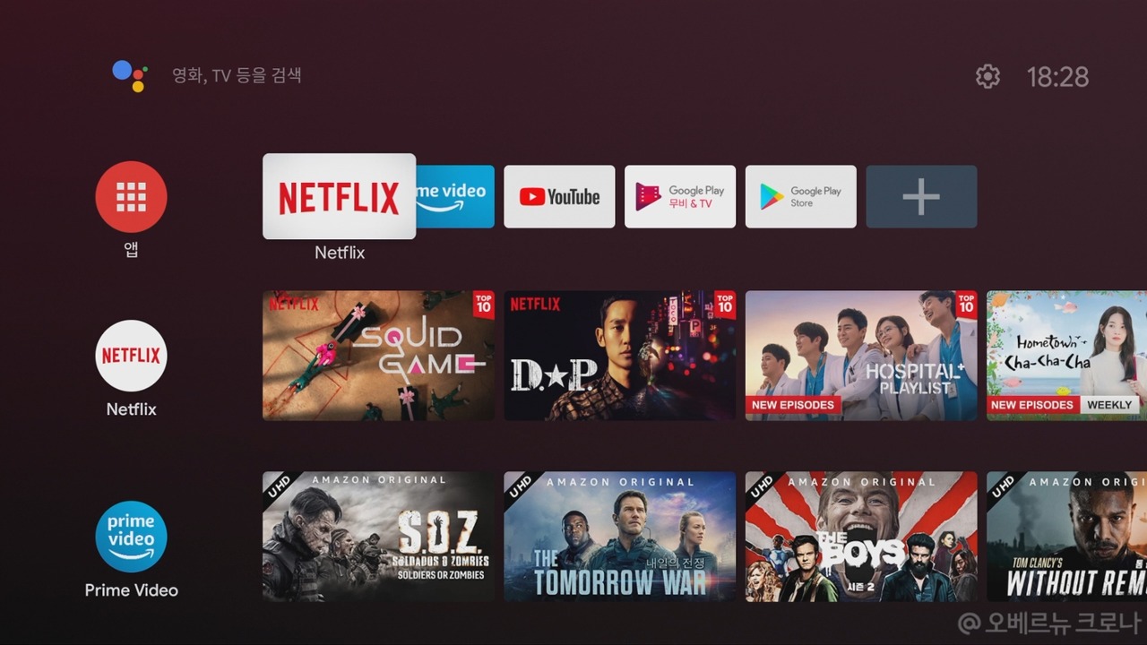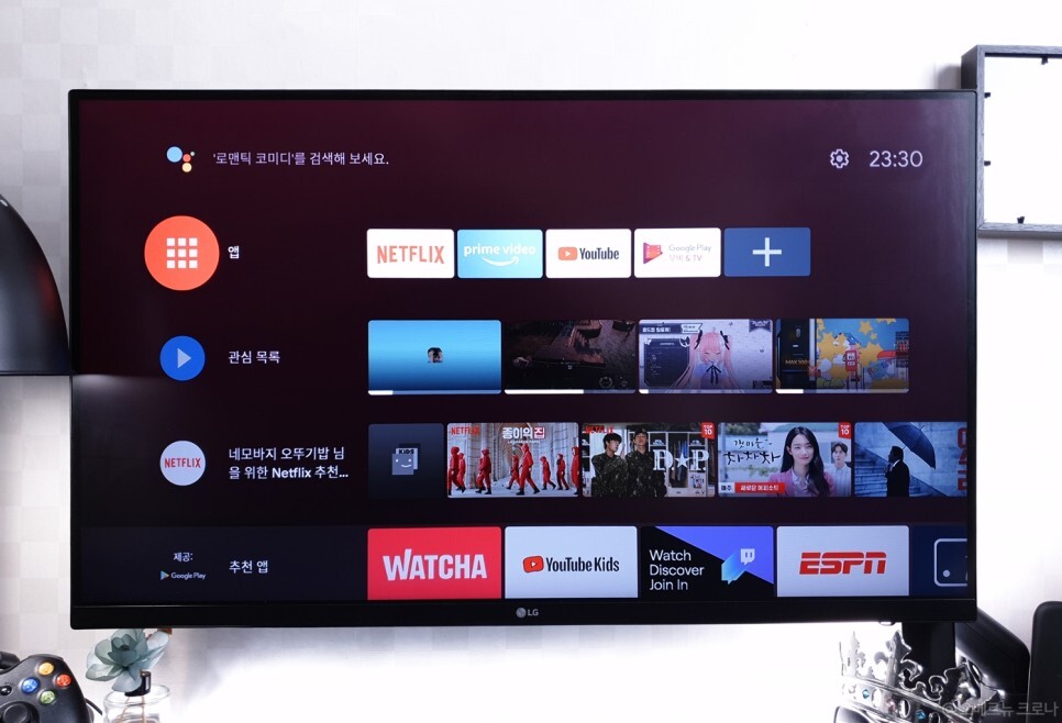 또, 리모컨에는 마이크가 탑재되어 있는데요. 구글 어시스턴트를 지원하기 때문에, 버튼을 눌러 음성으로 간편하게 컨텐츠 재생과 탐색, 연동된 홈 IoT 제품 제어 및 구글 검색이 가능합니다. 물론, 단순히 유튜브나 넷플릭스 등에 접속하려 하는 경우에는, 하단의 핫키를 눌러 다이렉트로 연결할 수도 있고요.