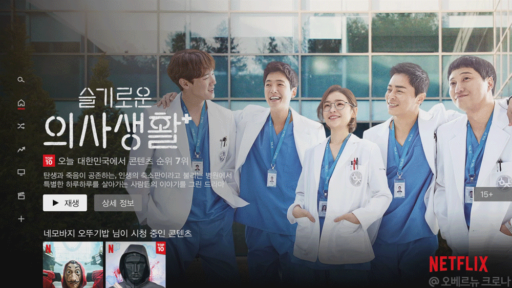 넷플릭스는 PC나 모바일 모두, 유사한 인터페이스를 제공하고 있습니다. 지역별 인기 콘텐츠부터, 시청 중인 시리즈 등의 항목을 지원하고 있는데요. 월 정액권만 결제하면, 추가 결제 없이 수많은 컨텐츠를 이용할 수 있기 때문에, 실시간 방송을 시청하기 어려운, 직장인과 젊은 세대 위주로 영상 콘텐츠 시장이 빠르게 변화하고 있죠.