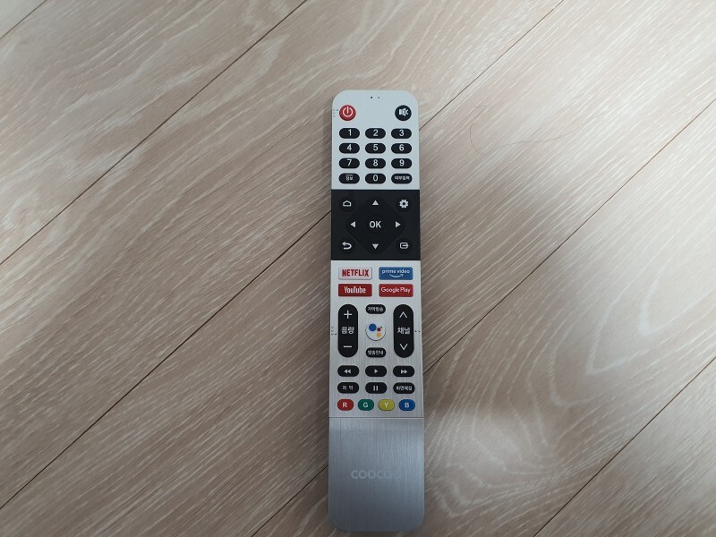 이스크라 쿠카 TV 리모컨입니다. 일반 리모컨이랑 기능은 비슷한데 특별한 기능이 넷플릭스, 유튜브, 프라임 비디오 플레이스토어 바로 가기 가 있네요. 그리고 구글 어시턴트 버튼도 눈에 들어옵니다. 자주 사용하는 기능을 리모컨에 탑재를 해두어서 아주 좋은 것 같습니다.