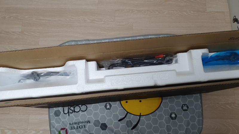 위쪽에 스티로폼 사이에 구성품들이 있습니다.