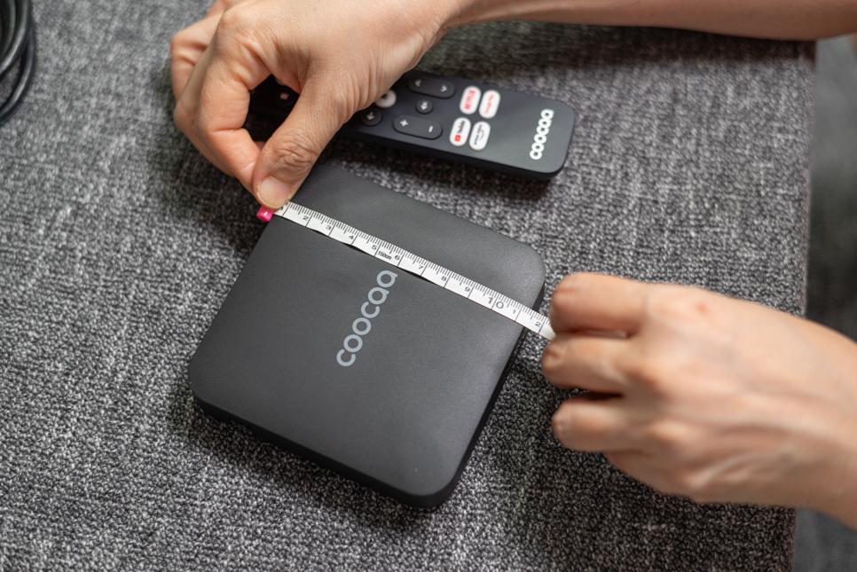 본체의 부피는 가로 세로 높이 11cm, 11cm 및 약 2.5cm로 작은 크기이고 이는 리모컨의 길이에 비해서도 작은 정도입니다. 무게까지 가벼워 휴대성이 뛰어난데요.