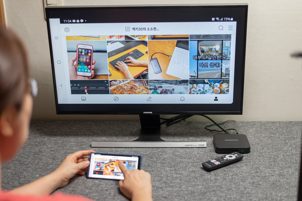 크롬캐스트 내장으로 구글 플레이를 이용하여 원하는 앱을 다운로드할 수 있으니 활용도는 그야말로 무궁무진합니다. 작은 화면을 대형 스크린에 옮겨 놓으니 몰입도가 높아지고, 보다 디테일한 콘텐츠의 감상이 가능해졌다는 것이 이 OTT박스를 설치하면 얻게 된 최대 장점이 아닌가 싶습니다.