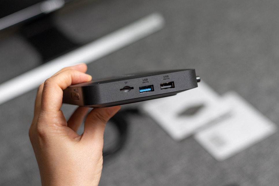 단자 구성도 다양하게 갖추고 있는데요. HDMI 2.1버전으로 4K 60Hz 지원으로 관련 콘텐츠를 부드럽게 시청할 수 있는 것은 기본이고, 2.4G 및 5G 와이파이 및 유선 포트까지 기본 내장입니다. 따라서 모니터 또는 TV가 있는 곳에 랜 단자가 있다면 안정적인 연결을 확보할 수 있습니다.